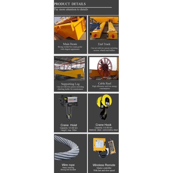 15 Tons Single Girder Electric Hoist Rail A Frame Gantry Crane